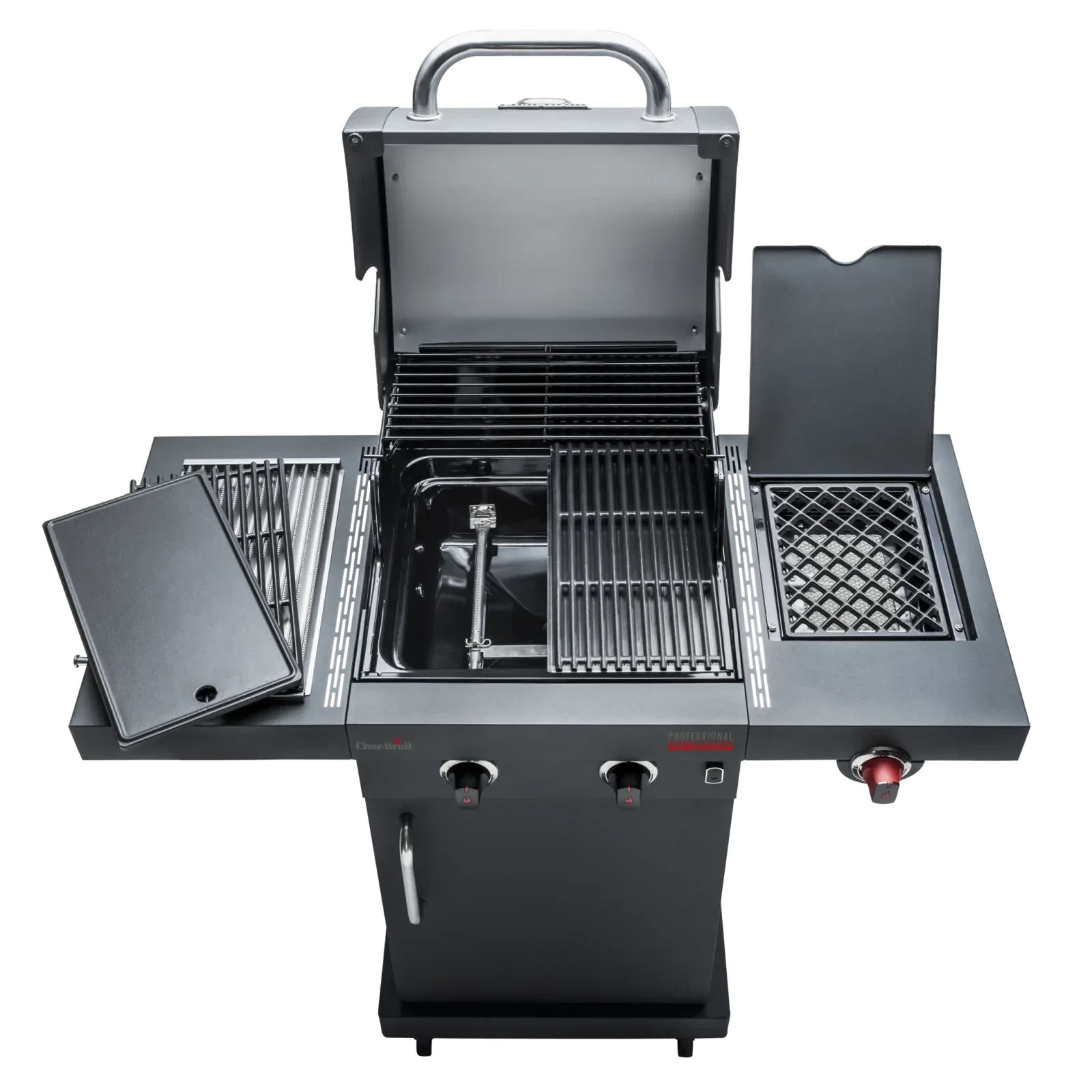 Alles drin, alles dran – alles drauf! Mit unserer Professional Power Edition im modernen mattschwarzen Look werden Deine Grillträume wahr. Dank unserer patentierten TRU‑Infrared™ Technology bleibt Dein Grillgut bis zu 50% saftiger. Ein kraftvoller Hochleistungs-Sear-Brenner sorgt für extra Power und erreicht Temperaturen von bis zu 900°C. Damit gelingt Dir im Handumdrehen eine knusprige Kruste auf jedem Steak. Auf der Hauptgrillfläche erzeugen gusseiserne Roste perfekte Grillstreifen und die Hochleistungsbrenner aus Edelstahl heizen ordentlich ein. Du willst noch mehr und hast Appetit auf Extras? Auf der gusseisernen Grillplatte kannst Du z. B. schmackhaftes Gemüse, Grillkäse, Spiegelei oder Meeresfrüchte zubereiten. Beim Grillen hängst Du Dein Grillbesteck einfach an die zwei GEAR TRAX® Haken – so hast Du es immer griffbereit. Weiter personalisieren und ausbauen kannst Du Deinen Professional Power Grill jederzeit mit unserem MADE2MATCH Zubehörsystem. Im Grillunterbau bietet eine stabile Halterung Raum für Gasflaschen von bis zu 11 kg. Zudem lässt sich der Grill dank einer klappbaren Seitenablage kompakt verstauen. Auf den Professional Power Grill kannst Du Dich immer verlassen: Er steht für vielseitiges Grillvergnügen mit exquisitem Geschmack!