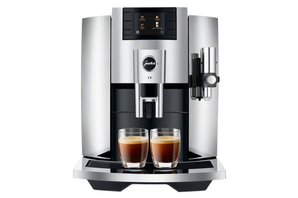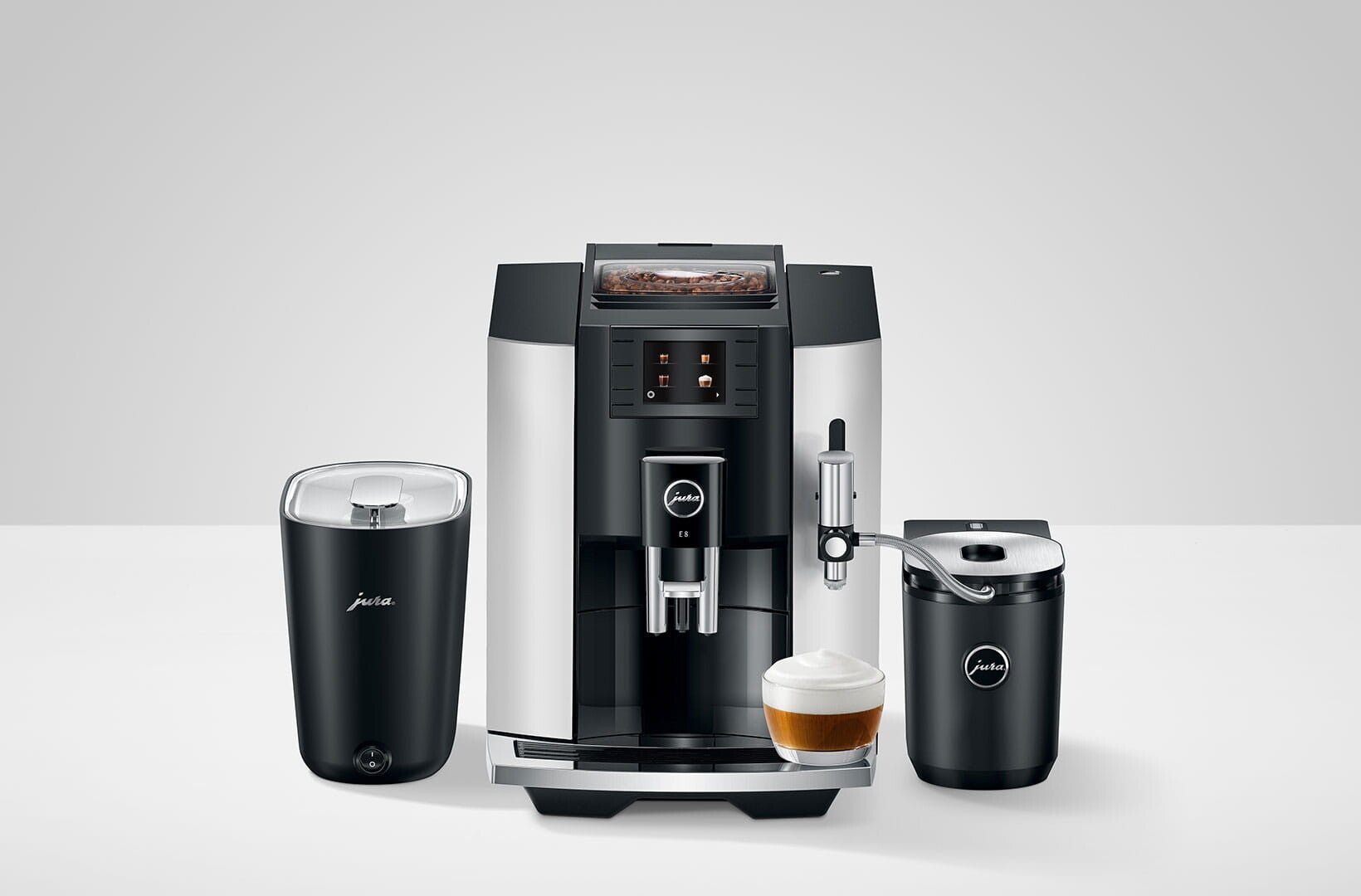 Das charakteristische Design von JURA-Kaffeevollautomaten präsentiert sich klar und ausdrucksstark. Hochwertige Materialien und eine präzise Verarbeitung unterstreichen die Premium-Qualität der modernen E8. Bereits ihre Formgebung steht für Qualität, Funktionalität und Langlebigkeit. Details wie der Wassertank mit Rillen oder die hochwertige, verchromte Tassenplattform vollenden das klare und harmonische Design der E8.