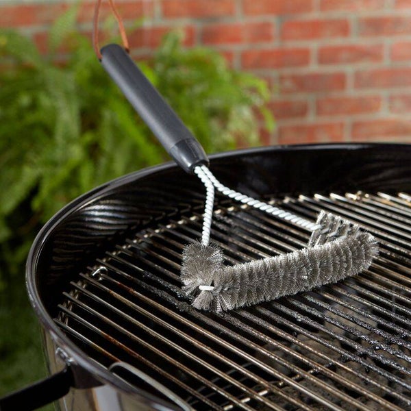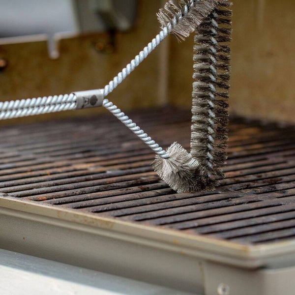 Die dreiseitige Grillbürste wurde entwickelt, um Fett und Speiserückstände von Grillrosten jeder Größe zu entfernen. Das Griffdesign bietet einen sicheren Halt beim Entfernen von festgebrannten Essensresten und beim Reinigen von engen Zwischenräumen. Den Grillrost vor jeder Benutzung mit der Grillbürste abbürsten, damit der Grill länger hält und jedes Grillgericht ein echter Genuss ist.